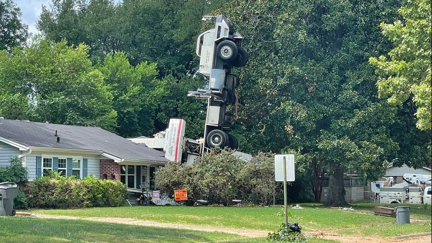 Tree Cutting Crane Flips Over On Top Of Shreveport Home Crushes Roof